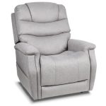 Two stage lift function. Lay flat chair design. Powered headrest to lift or lower head position. Footrest extension for increased comfort. Lumbar support to accommodate sitting posture. Ultra durable stylish fabric. Easy to use hand controller.